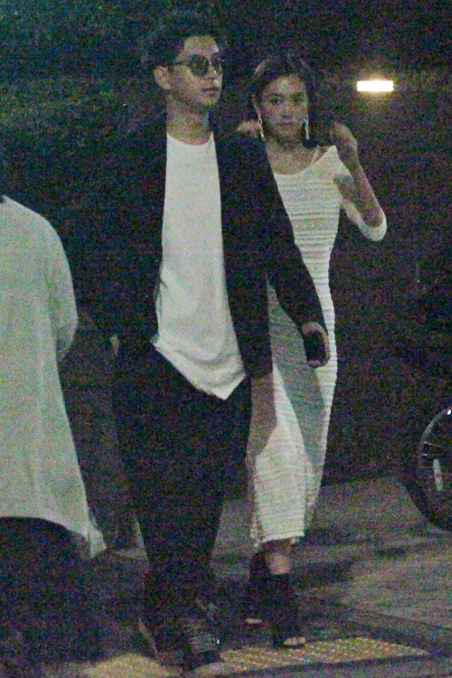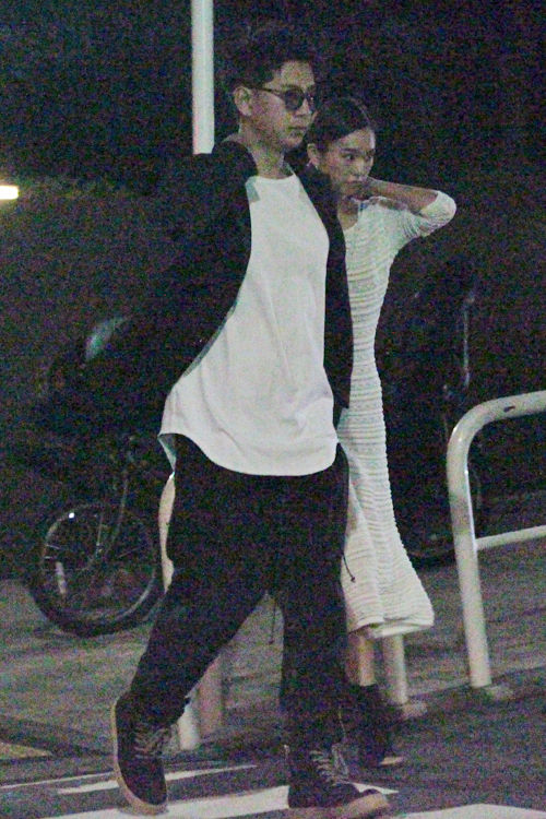 爽やかにトータルコーディネート。周囲を気にする様子も見せず、手をしっかりつなぐ様子はラブラブそのものだった。